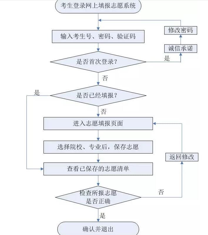 登录系统:考生登录系统需要输入考生号、密码和验证码。初始密码为考生身份证号后8位。首次登录系统要求考生必须进行诚信承诺并修改密码,然后使用新密码再次进行登录。
